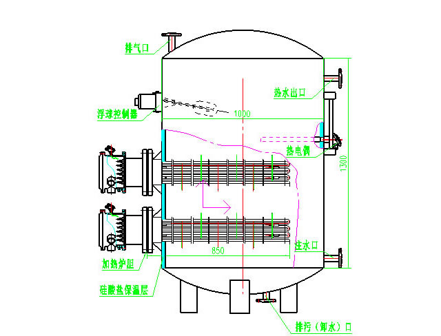 提高热媒与被加热水的流述,变层流换热为紊流换热。充分利用罐体内初次加热时冷、热水之密度差,使其形成自然循环将罐体底部的冷水加热。